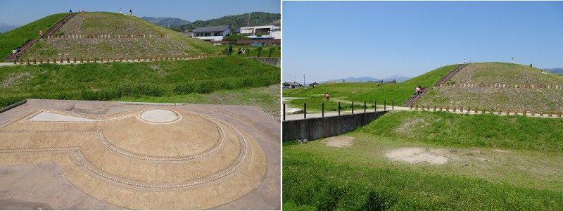 前方、後方ともに3段からなる前方後円墳です。古墳の周囲には地山を深く掘り込んだ不整形な空堀の周濠がめぐらされています。埴輪は各段に500本ほどが並べられていたと考えられています。