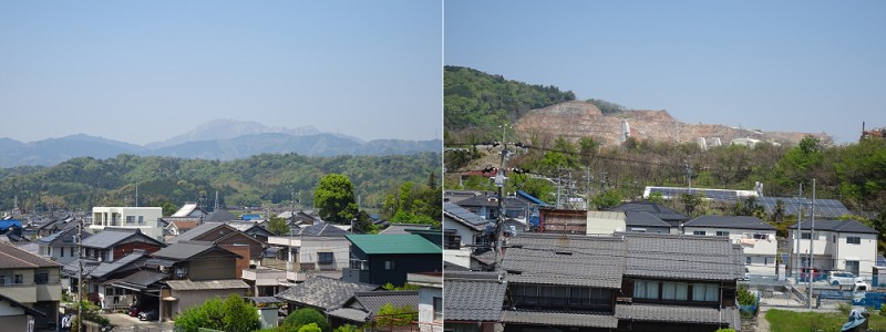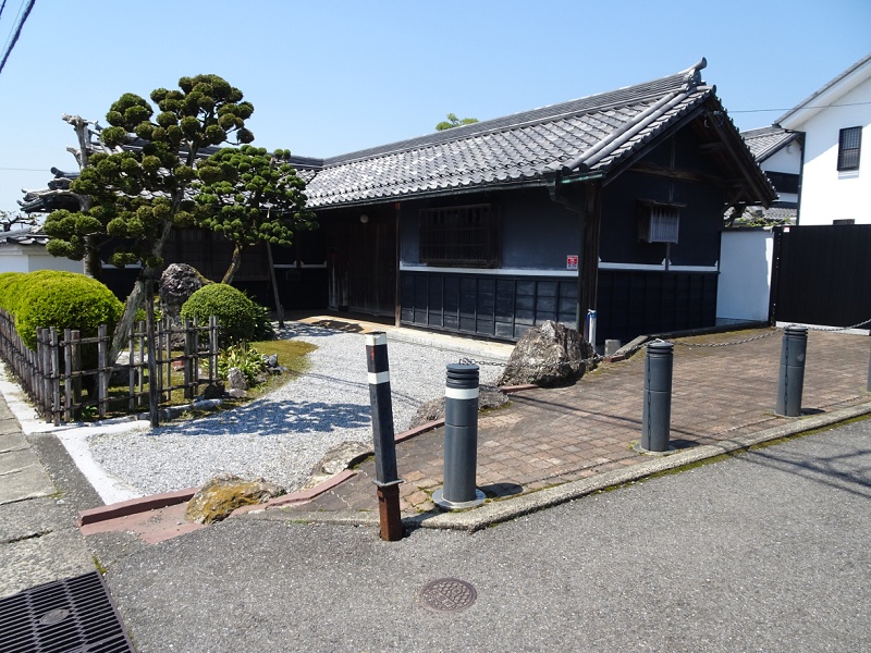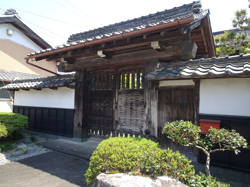 古墳の頂上からは伊吹山や関ケ原、濃尾平野を一望できます。 金生山は2億5千年前、海底の地殻変動が逆断層し隆起してできた山です。日本有数の石灰岩、大理石の産地として知られ、古生代の化石が豊富に出土しており、化石の宝庫でもあります。 中山道へ戻り少し進むと右手に「旧早野邸」、そのすぐ先右手の角にも長屋門のある立派な旧家があります。