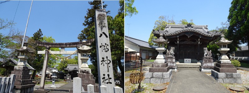1838年(天保9)創建。社殿のなかった山神を合わせ、牛頭天王、神明社、大明神社、明神社、社宮神社、熊野権現社などを合祀し、八幡神社となっています。昼飯町の由来