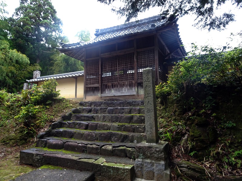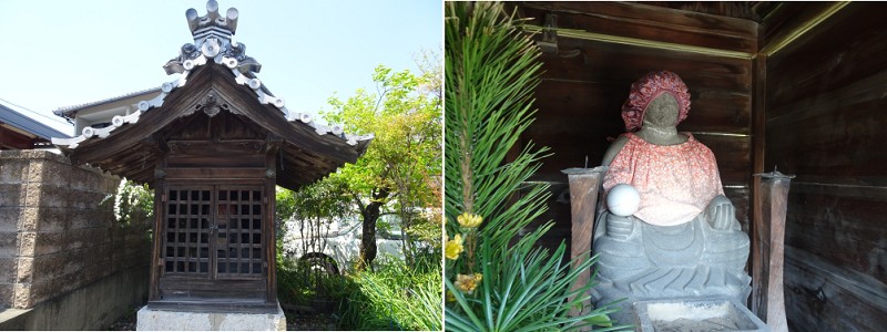 180mほど進むと路地の角に地蔵堂と御坊道碑があります。