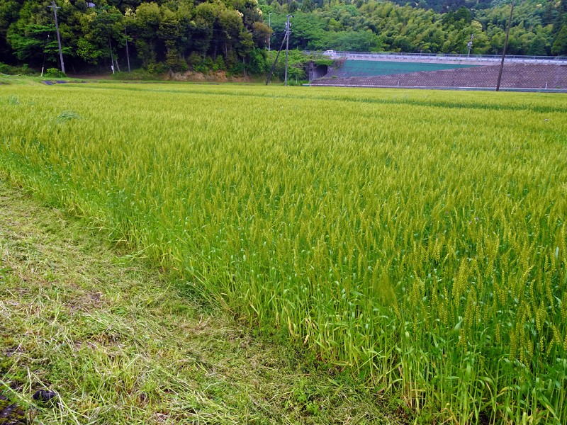 大谷川を越え、すぐに県道をも越えてまっすぐ進んでいきます。街道の両側ともに水田が広がります。300mほどで集落の中に入っていきます。少し遠いですが、稲葉正休の屋敷があったとされる場所に寄り道していきます。左へ曲がり350mほど歩き水田の一角に石碑があります。