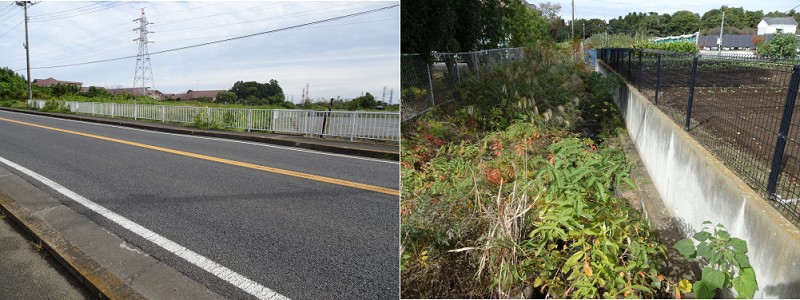 10:30 野木駅出発。日光街道まで1kmほどあります。日光街道へ合流したら右へ。80mほど進んだあたりに「逆川板橋」があったと思われますが、手前で左へ曲がると「逆川」についての案内板があります。