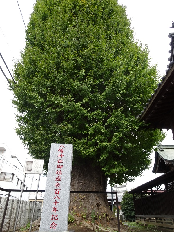1642年(寛永19)古河城内に祀られていた八幡神社をこの地に移した時に植えられたと伝えられています。