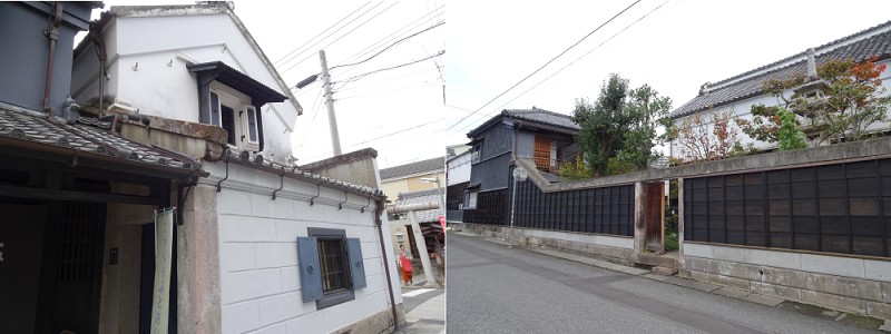 追手門跡で左へ曲がり、県道との交差点の西側が
