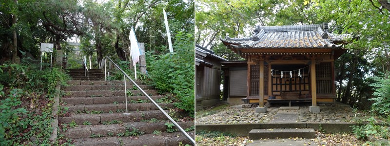 水神宮から上っていくと「頼政神社」へ至るようですが、草が繁茂していて近づけませんでした。頼政神社はぐるっと回り、正面の参道から入ることにします。