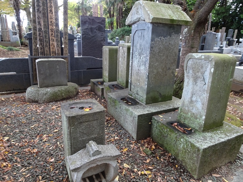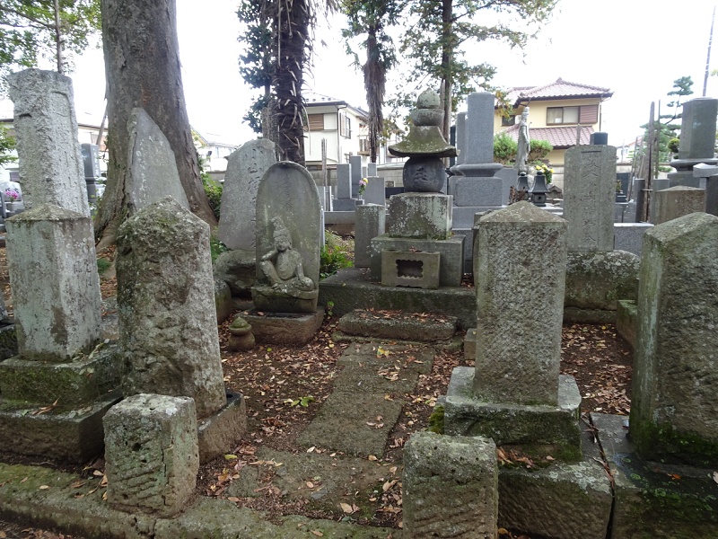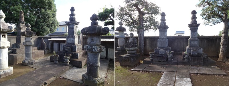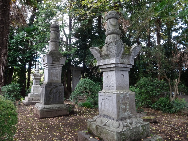 東京浅草の誓願寺にありましたが、1923年(大正12)の関東大震災後の東京復興計画によって墓所の移転に迫られ、1927年(昭和2)現在地へ移されました。正面に初代土井利勝夫妻の宝篋印塔2基、向かって左側に歴代の土井家当主の供養宝篋印塔、右手に13代、利則夫妻の宝篋印塔があります。