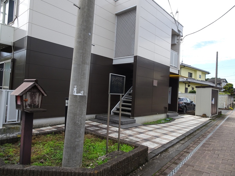 教武所跡の横を抜け、さらに60mほど北へ進み、左へ曲がります。30m右手の住宅街の一角に