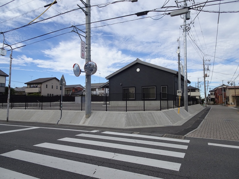 古河第一小学校の北側角を左へ曲がります。150mほど進むと右手に
