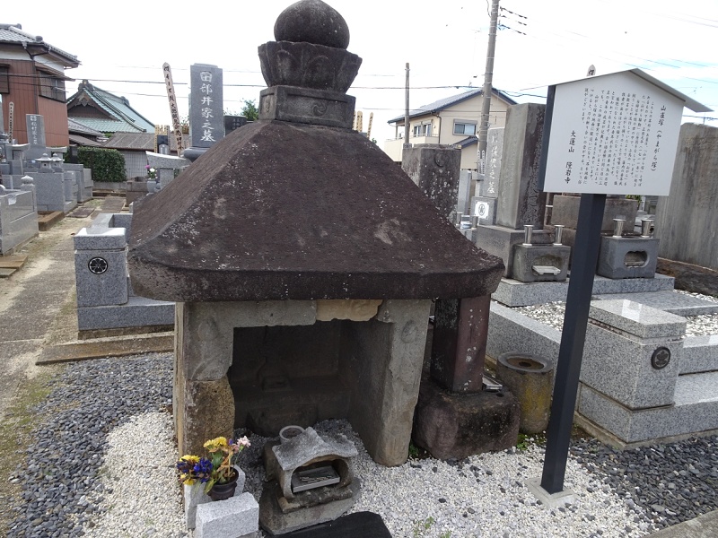 隆岩寺は秀政が妻の父である岡崎三郎信康(家康の長男)のために建てたもので、傍らの宝篋印塔が信康の供養塔です。