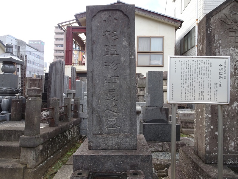 小山家は藤原秀郷の末裔で、古河公方との関りも深く、弘治年中(1555~58)から観音寺郭に住み観音堂を守護していたので「観音寺」とも俗称されていました。後年、江戸町の北側(中央1丁目)に屋敷を移し、墓所も邸内にありましたが、1949年(昭和24)永井寺へ改葬されました。